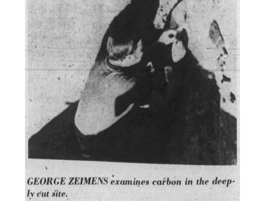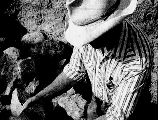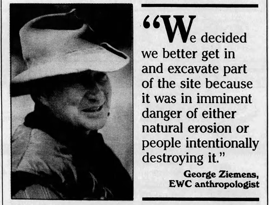 Assisting George Frison we see field-foreman George Zeimens, who has a bachelors degree in anthropology, performing exploratory excavations at the site. George is also a expert mechanic and equipment operator, it says.